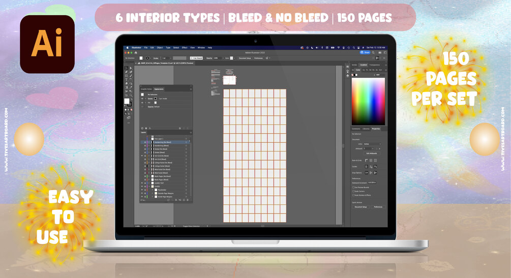 -One 7"x10" KDP Formatted Template for Adobe Illustrator. The template includes a variety of page interiors including: 4”x4” dotted pages, 4”x4” grid pages, blank pages, college ruled pages, handwriting pages and wide ruled pages!