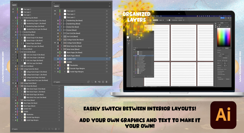 The Adobe file also features page guides and instructions so you can personalize your book how you want, and still stay within KDP, Ingram Spark and Book Baby guidelines for easy uploading!